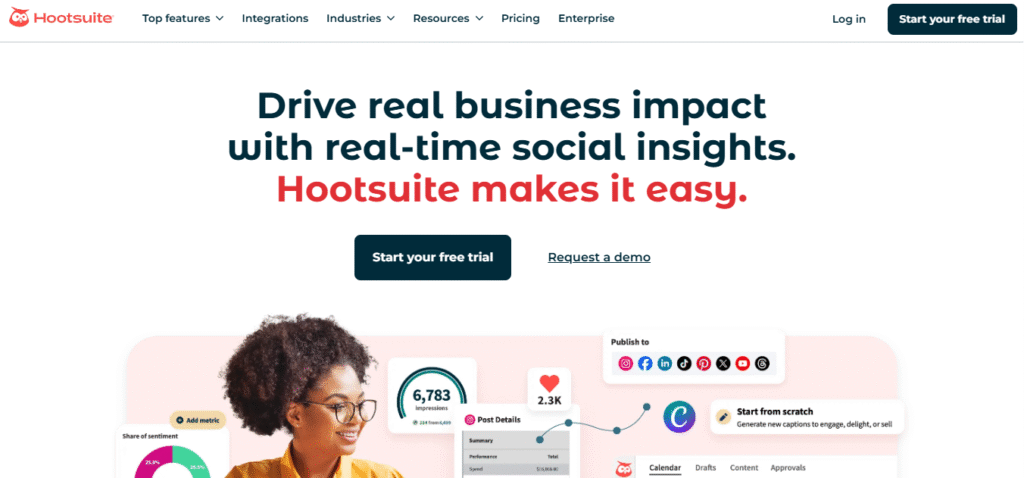 - For enterprises: Hootsuite or Sprout Social