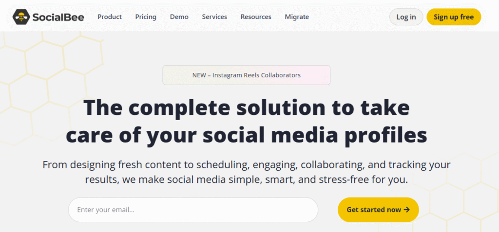 - Free: 1 social set (1 profile per platform), 30 posts per month
